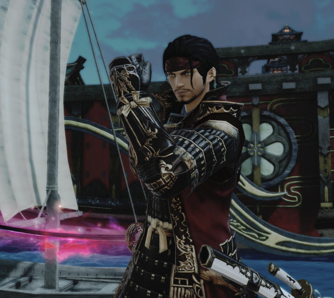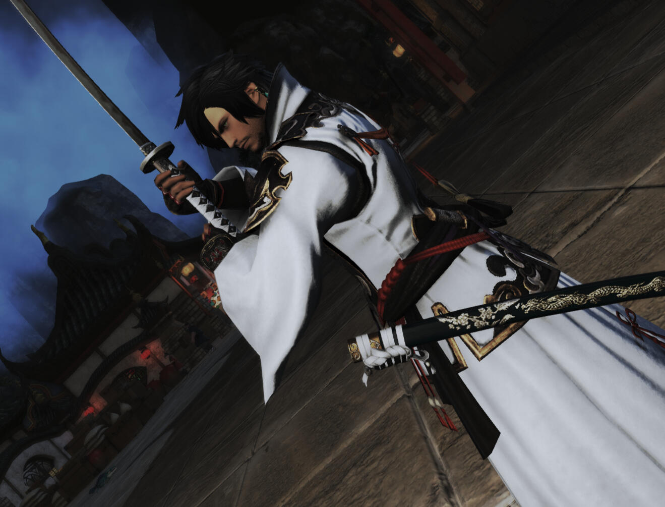 Kaze is skilled in using the Katana, the Nodachi, as well the Naginanta and Yari. His Katana is know in Doman as, "The Wind Serpent's Tail." The Nodachi, "The Oni Robe Cutter." His current Naginata is dubbed the "Coeurl's Fang"