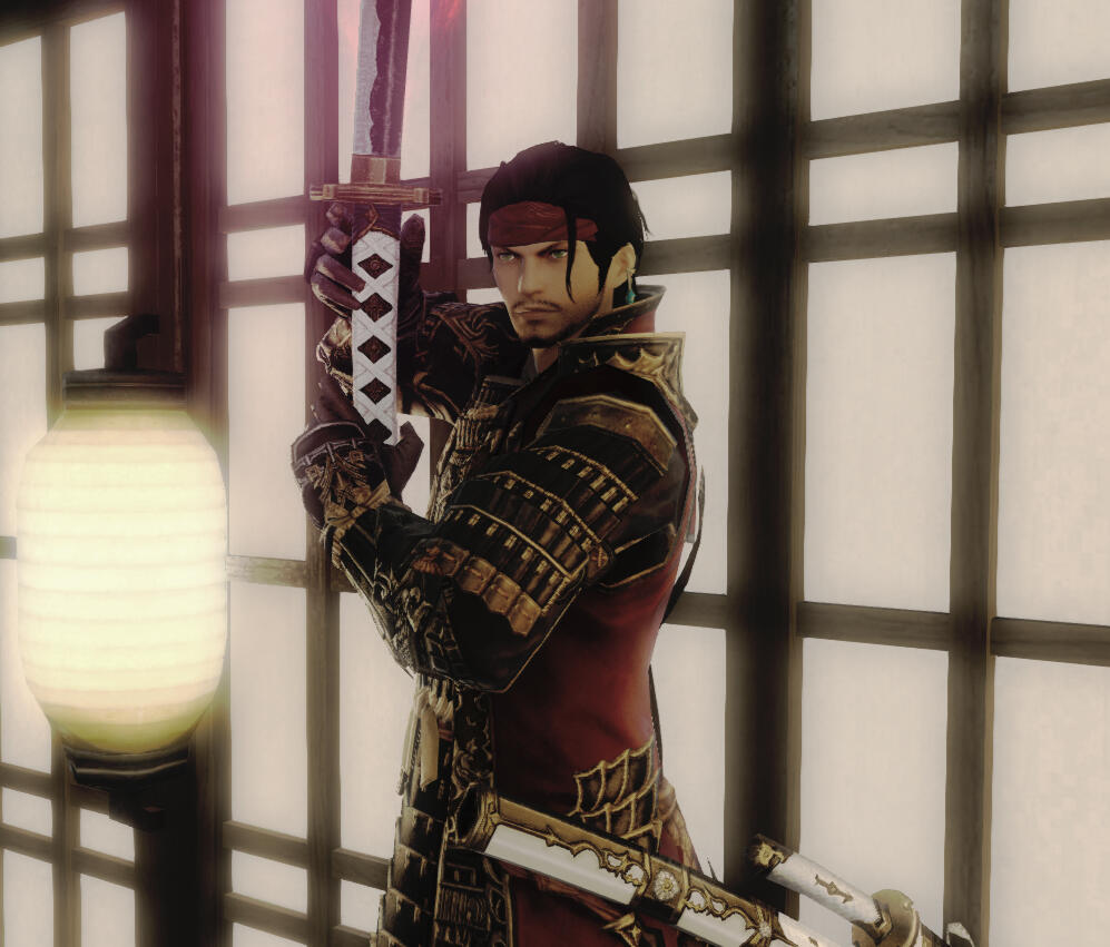 Kaze is skilled in using the Katana, the Nodachi, as well the Naginanta and Yari. His Katana is know in Doman as, "The Wind Serpent's Tail." The Nodachi, "The Oni Robe Cutter." His current Naginata is dubbed the "Coeurl's Fang"